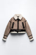 Introducing our Beige Sherpa Lining Women's Suede Jacket, a chic embodiment of style and comfort. Crafted from sumptuous beige suede, this aviator-inspired jacket boasts a cropped silhouette that effortlessly merges fashion with function.
