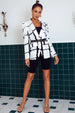 Womens Black And White Plaid Puff Shoulder Blazer White / S Coats & Jackets